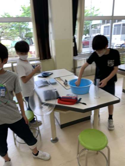 クラブ員の探してきた科学実験「長くもつシャボン玉」に挑戦しました。材料の配合割合が難しかったのですが、試行錯誤するうちにどの班もシャボン玉を作ることができました!次は1学期最後の実験です。楽しみましょうね!