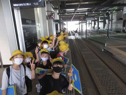 左側の写真は、富山駅でライトレールを待っている様子です。