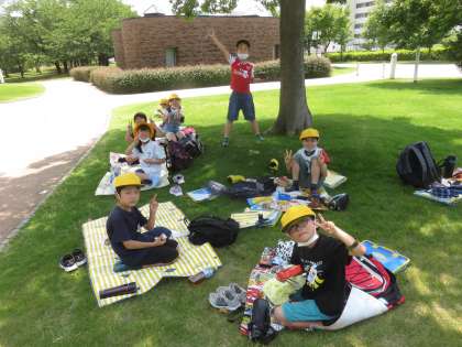 環水公園ではグループごとに昼食を取りました。みんなおいしそうに弁当を食べました。