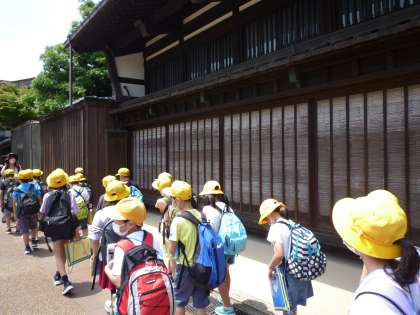 子供たちは、暑い中、たくさん歩き、見たこと・気付いたことを一生懸命メモしていました。