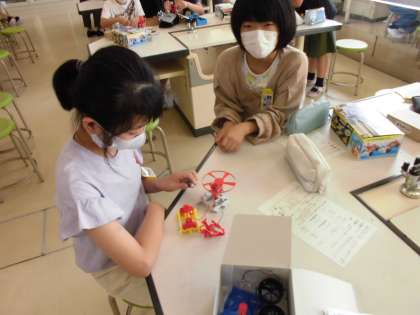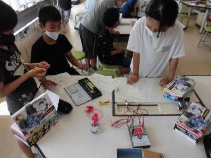 理科では電流の学習をしています。電流の大きさを測るために検流計を使いました。正しくつないで、直列つなぎと並列つなぎの電流の大きさの違いについて学習することができました。