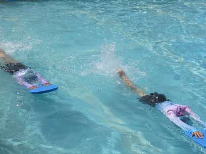 先週から準備をし、プールに入ることを楽しみにしていた子供たち。1年ぶりのプールに歓声を上げながら、ルールを守って活動することができました。