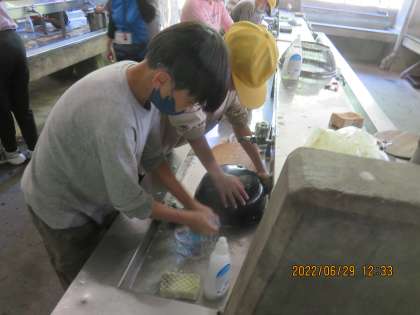 水の量の調節が難しそうでしたが、どの班もしっかり作ることができ、美味しい昼食になりました!片付けまでばっちりです。