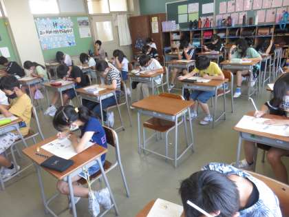 1学期の学習内容がどれだけ理解できているか、身に付いたかを試す「学習のたしかめ」を行いました。今週は、理科と社会の2教科を行いました。来週は、国語と算数。しっかりと復習をして臨んでほしいと思います。みんな、頑張れ!!