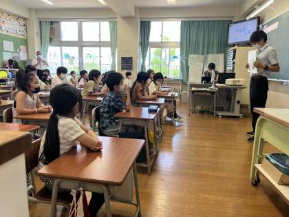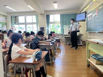 道徳「モムンとへーテ」を学習している2組の様子です。先生の紙芝居を夢中になって聞いています。その後登場人物になりきって多様な考えを伝え合っており、純粋な心で本当によく考えていると感心させられました。謝ったり許したりすることの大切さや、自分たちには仲良しでいたい気持ちがあることに改めて気づいていました。
