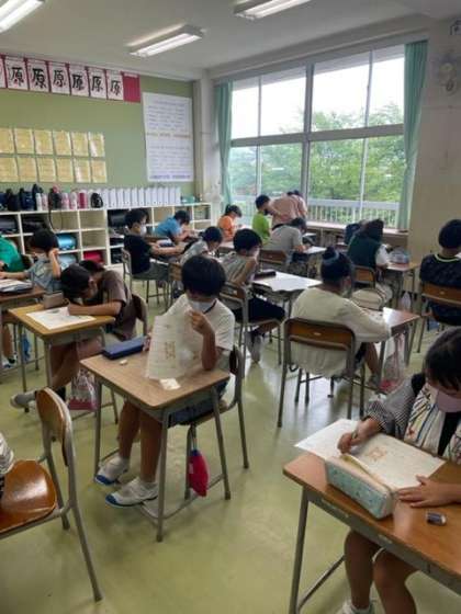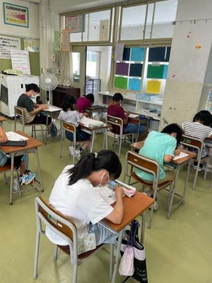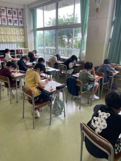 学習のたしかめではどのクラスでも真剣に取り組んでいました。