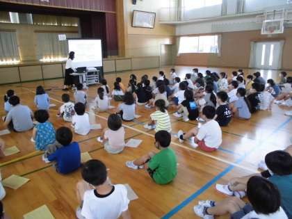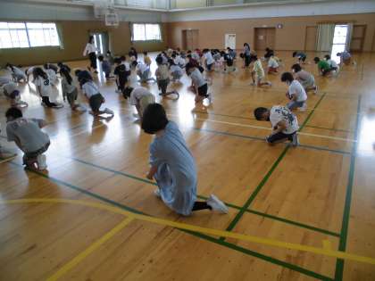 2学期スタートの日である29日、学年集会を開きました。2学期の行事や学習内容を聞き、これからの学校生活に期待を膨らませていました。その後、学習発表会で踊るよさこいの練習に汗を流しました。
