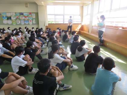 今日から2学期が始まりました。始業式では、卒業式を意識した態度で参加しました。姿勢を正し、真剣に校長先生の話を聞く子供たちはとてもたくましく感じられました。また、1時間目に行われた学年集会でも、話をする人と目をつなぎ立派な姿勢で話を聞くと共に、2学期に行われる学習発表会やチャレンジ陸上記録会に対して期待に胸を膨らませている様子でした。
