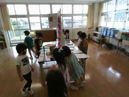 学級内で発表会をした後、1組は上級生の自由研究を見学してきました。