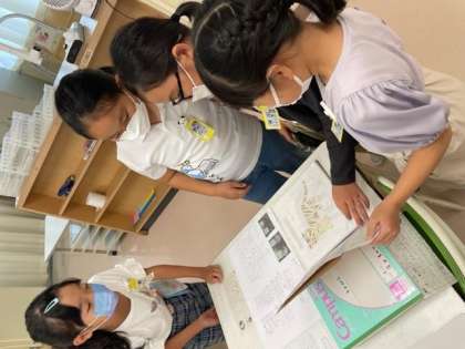 夏休み作品展では夏休み中に頑張った自由研究や工作を各学年で展示しています。一人一人の頑張りが感じられました。子供たちも、友達も研究や工作を興味深そうに見ています。