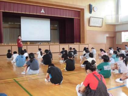 今日は2学期が始まって、初めての学年集会でした。教育実習生の紹介や行事、音楽会、きまりの確認などをしました。話を聞く態度も立派で、やる気に満ちあふれている三年生です。