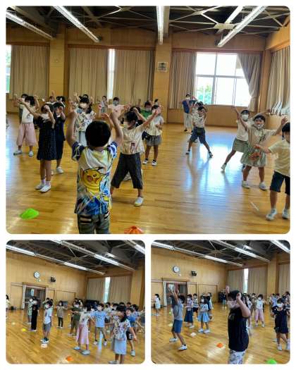 今日はとても暑い日でしたが月曜日の2年生は元気いっぱいでした。よさこいの連絡をしている様子です。