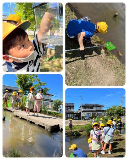 生活科「生き物となかよし」の学習で生き物探しをしています。ビオトープでは、早速ミズカマキリやメダカ、トンボ、バッタを見つけました。虫取り網や虫かごの準備ありがとうございます。