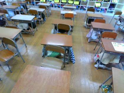 関東大震災の日に合わせて、地震が起きたときの身の守り方について訓練しました。
