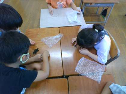 アサガオの種がたくさんできていたので、強風に備えてアサガオを校内に取り込む前に、種を集めました。