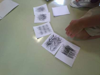 図工の学習で、身の回りのでこぼこしたものを画用紙に写し取る学習をしました。