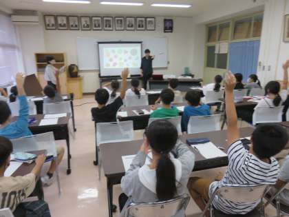 総合的な学習の時間では、「あなたと共に生きる」の学習を進めています。今日は、富山市手話サークルとわの会から2名の講師をお招きし、お話を聞かせていただきました。聴覚障害の方の生活や、コミュニケ−ション手段となる手話について、詳しく教えていただくことを通して、「もっと手話を知りたい」「耳が聞こえないから幸せじゃないとは限らない」など、それぞれに感じることがあったようでした。