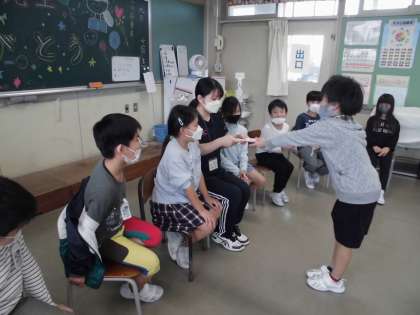 ゲームを通して、一緒に学習したり遊んでもらったりしたことを思い出していました。子供たちは「また、山室中部小学校に来てほしい」との思いから手紙を書いて渡し、先生との別れを惜しんでいました。素敵な先生になって、また会えたら嬉しいですね。