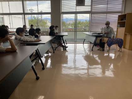 総合の学習として、盲導犬ユーザーの方からお話を聞きました。目が不自由な方にとって、耳で得る音や声が重要であること、盲導犬は白杖よりも安心して歩けることなどを教えていただきました。また、クロックポジションで場所を伝える方法を知り、子供たちは実際にその方法で指示を出し合ってみることで、相手の立場に立って指示を出すことの大切さと難しさを感じていました。