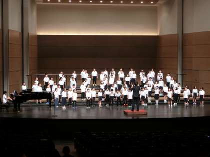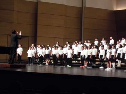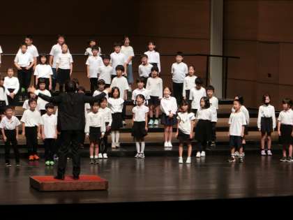 いよいよ本番です。ステージに上がると、きりっとした表情に変わり、指揮者をしっかりと見ていました。歌が始まると、大きな口を開けて、楽しく歌っている様子でした。歌い終わるとたくさんの拍手をいただき、達成感に溢れていた子供たちでした。