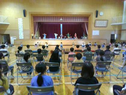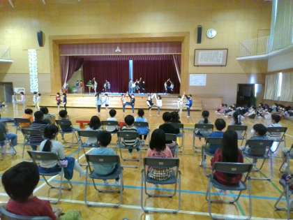 今日は4時間目に、2年生の学習発表会の演技を見せてもらいました。