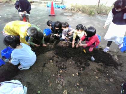 この日はアサガオの鉢に残った、根や土を片付けました。