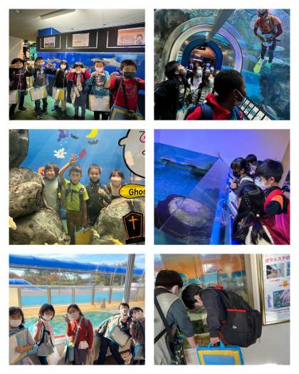 午後は魚津水族館に行きました。グループで生き物ビンゴやお気に入りの生き物の絵をかく活動に取り組みました。魅力的なコーナーばかり。生き物が大好きな2年生は、目を輝かせながら観察していました。