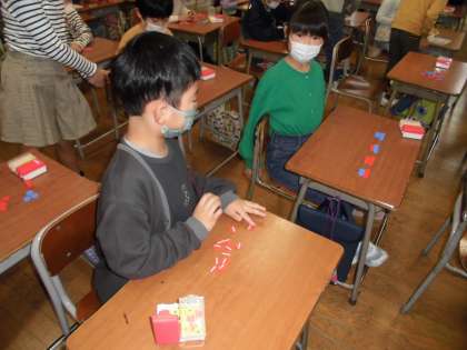 かけ算九九の練習をしています。九九カードを使ったり、九九の歌を歌ったりするなど覚え方を工夫しています。みんなで覚えることができるように、引き続き練習をしていきます。ご家庭での練習へのご協力、いつもありがとうございます。
