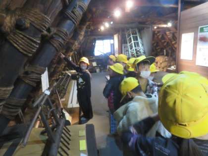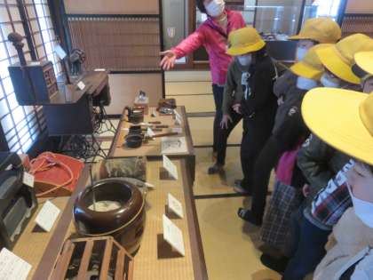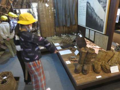 農作業に使う道具や日常生活に使う道具などを見て、今の道具との違いに子供たちは驚いていました。