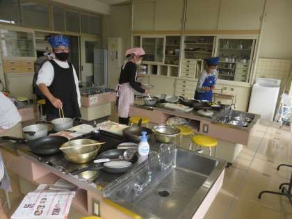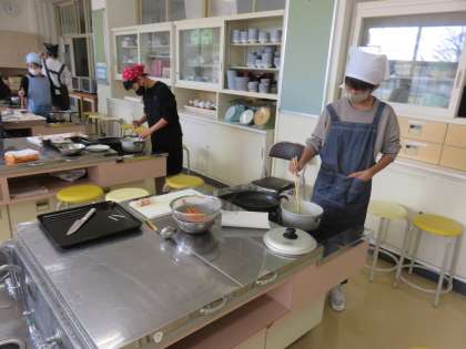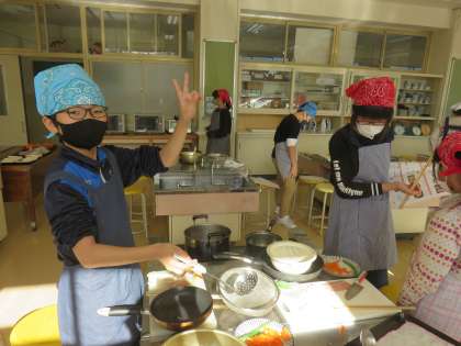 今日は、1組が野菜のベーコン巻きに挑戦です。それぞれが準備から片付けまで全行程を行います。作る手順を頭に入れて、てきぱきと作る姿が頼もしかったです。