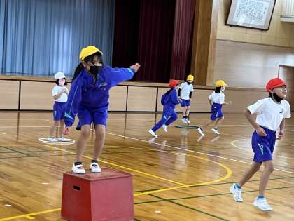 体育の時間には説明文に出てきたおにごっこを実際にやってみました。最初は「寒い」と言ってた子どもたちもアリーナで元気に走り回り、ぽかぽかになっています。