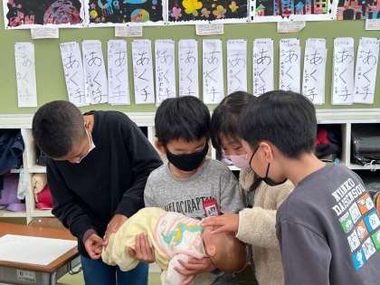 生活科では、小さい頃の自分について調べています。インタビューへのご協力ありがとうございました。インタビューをもとに生まれたときのことを紹介しています。「ぼくは体重がこれだけだったよ」」「生まれるまでに長い時間がかかったんだって」などと教えてくれました。