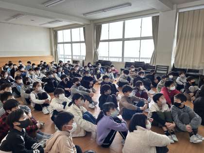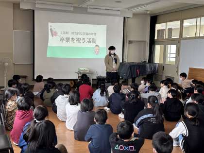 3学期の総合的な学習の時間では、「卒業お祝いプロジェクト」に取り組みます。昨年度の活動の様子を聞きながら、「今年は何をしようかな」「どうしたら6年生が喜んでくれるだろう」と自分たちの活動をイメージしていました。