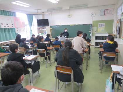 本日、スクールカウンセラーの先生による「いのちの教育」がありました。「みんなが風邪をひいた事があるように、心も風邪をひく事がある」という話から始まりました。心の健康を保つために、悩みを周囲の人に相談する大切さや、短所は長所になるというポジティブな考え方を学びました。また、「私と小鳥とすずと」の詩から、人は一人一人違うことがよいと教えてもらいました。