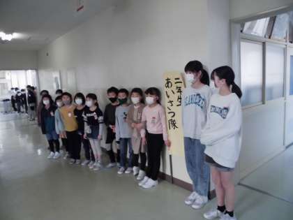 運営委員会の呼びかけに応じて、あいさつ隊を体験しました。「2年生 あいさつ隊」というのぼりを見て、やる気スイッチもオン!次は金曜日に体験予定です。「朝の準備を素早くしたい」と、今から意欲まんまんでした。