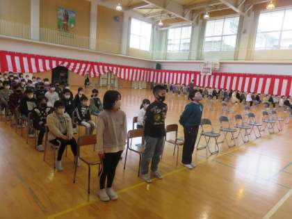 5年生は、在校生の代表として卒業式に出席します。これまで、各学級や学年で国歌や校歌、門出の言葉等の練習に取り組んできました。昨日、今日の全体練習では、真剣に式に臨む姿が見られ、最高学年になる意識を高めています。また、6年生の姿をしっかりと見つめ、最高学年としてどんな自分になりたいのか考えてほしいと思います。