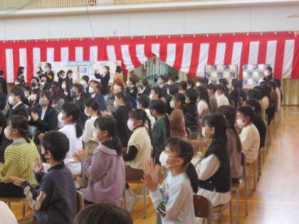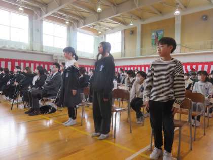 子供たちは、6年生の卒業をお祝いするため、卒業式に参加しました。学校でいちばん大事な式であることを理解し、式が始まるまでの待つ態度、また、式が始まってからの姿勢と声、そのどれもが「さすが5年生」と言えるすばらしい姿でした。