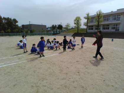 ジャンプしたり、体の向きを変えたりしながら、スタートダッシュの練習をしました。