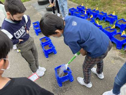 理科の学習でホウセンカを植えました。小さな種を落とさないように大事そうに植えていました。観察が楽しみな様子です。