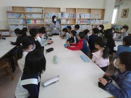 今日は待ちにまった図書オリエンテーションでした。司書の先生から本のラベルの意味を教わったあと、実際に本を探すゲームを通して、本の場所の探し方を学びました。
