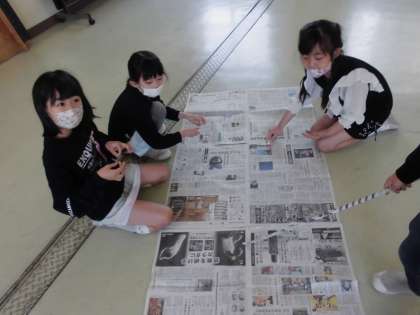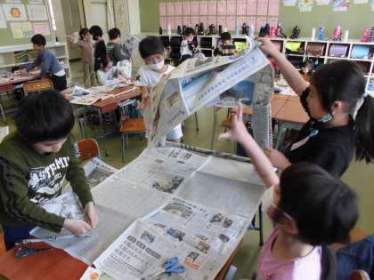 今日の図画工作科では「しんぶんしとなかよし」という学習を行いました。