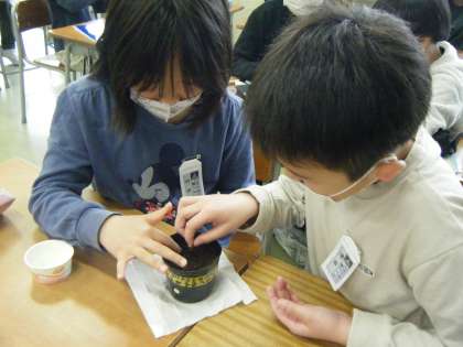 理科の学習でヘチマの種を観察した後、種まきをしました。