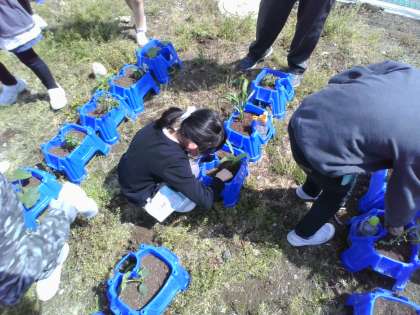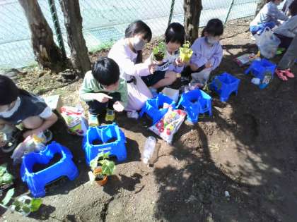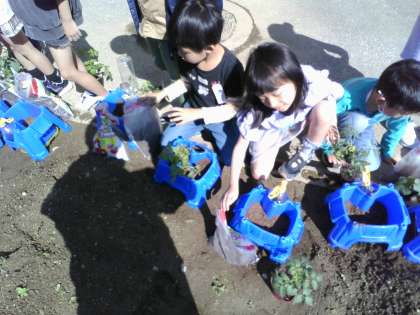 先日の生活科の学習で、野菜の苗を植えたときの様子です。