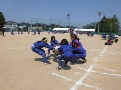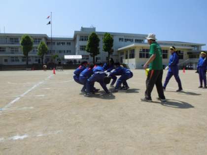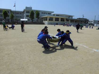 先日予行練習が行われ、5年生はタイヤ引きの予選がありました。初めてタイヤを引いての試合をしましたが、どの団もルールを守り、楽しく競技を行うことができました。