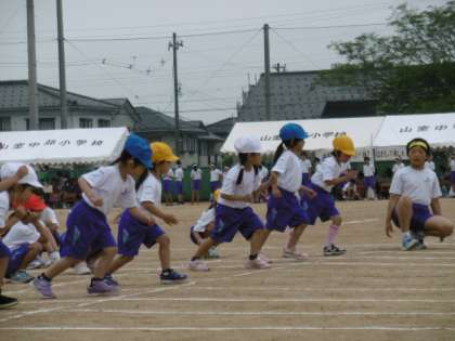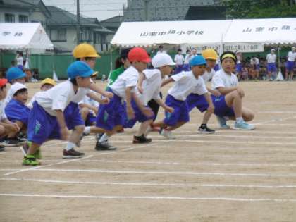 スタートでぴたっと体を止めて走る姿勢をとり、全員がゴールまで走り抜けました。勝ち負けはあっても、最後まであきらめないで頑張ると言っていた子供たち。かっこよく有言実行できましたね!