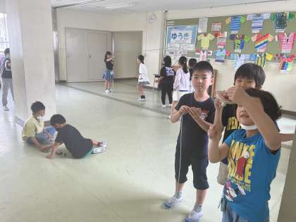 国語の説明文で「こま楽しむ」を学習しました。子供たちは本文に登場するこまに興味津々です。廊下に置いておくと、子供たち同士で回し方や回すこつを教え合い、とっても上手に回しています。