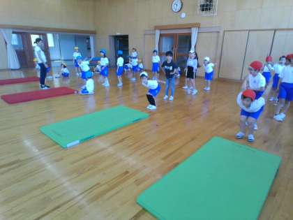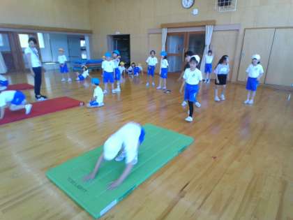今日の体育の学習では、立ち幅跳びの記録測定をしました。