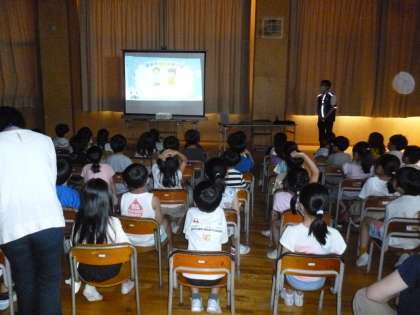 少年サポートセンターより講師の方をお招きして「くもくん教室」を行い、プライベートゾーンについて学びました。