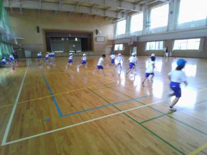 体育の学習で、シャトルランの記録測定をしました。