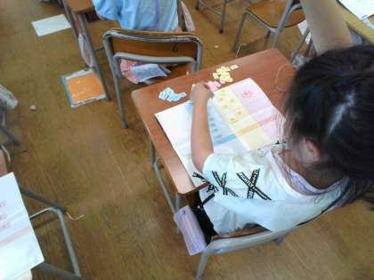 今日は位取り用の下敷きを使って、3桁の数の勉強をしました。